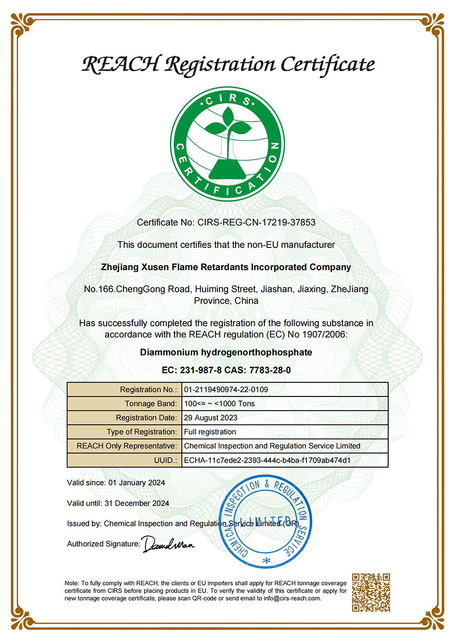Diamine Hydrogen Phosphate đạt được chứng nhận đăng ký