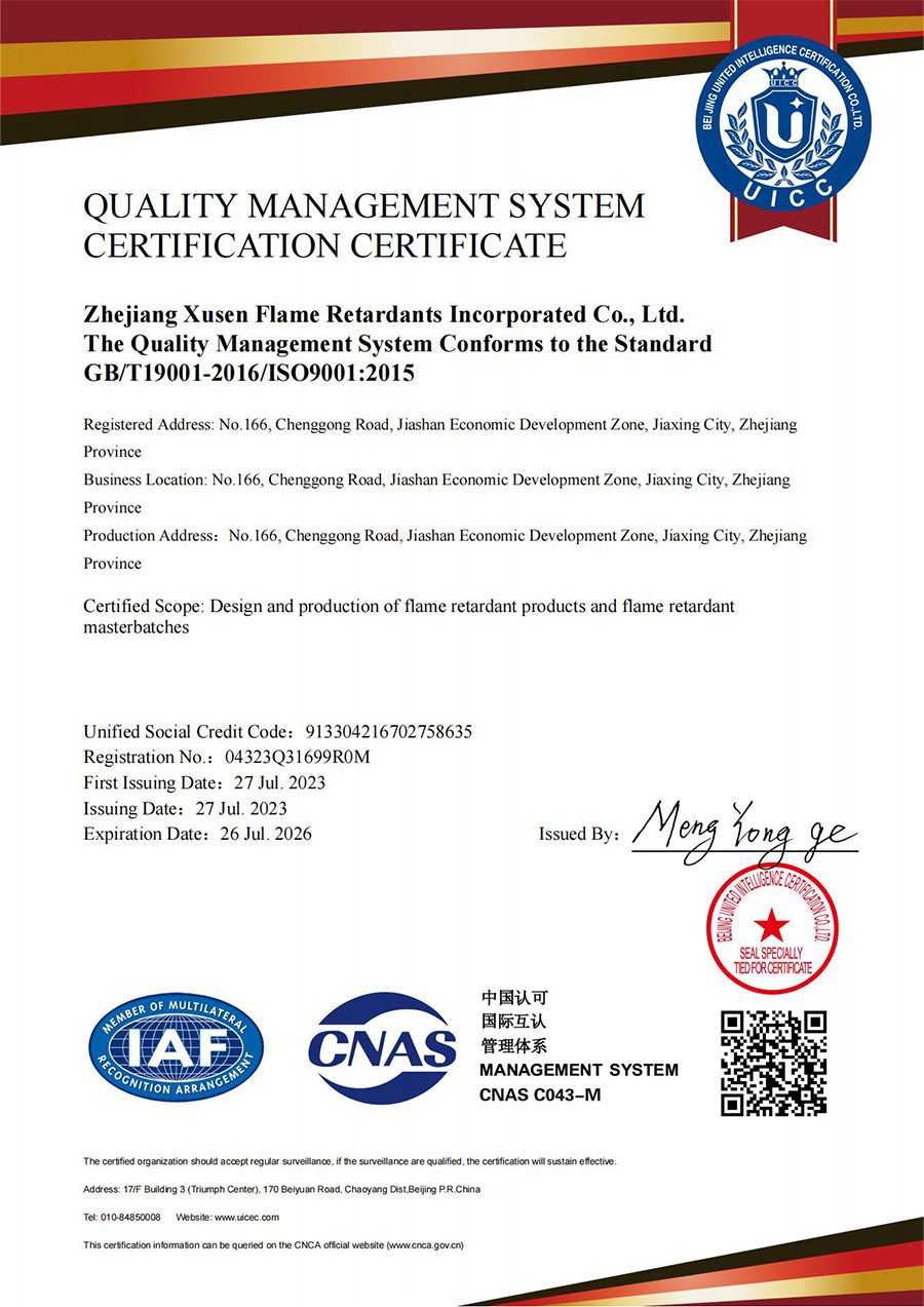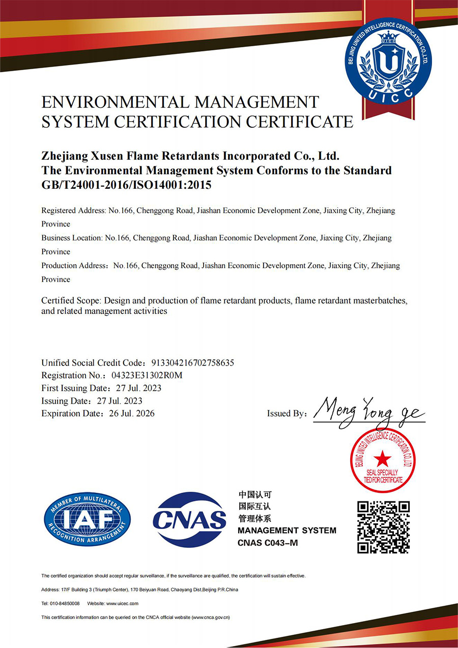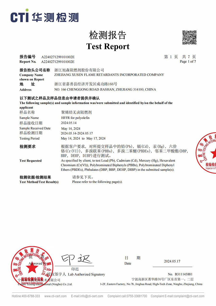 Chất chống cháy cho báo cáo thử nghiệm Polyolefin Rohs